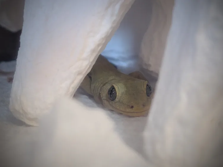 静岡ツアーに出ておりますのお話、その⑦です。無事に市内へ入りまして、まずはホテルに荷物を置きに行きます。駅までは徒歩5分ですから、めちゃくちゃ都市部に近いところで泊まることになりました。初めてづくしの静岡ツアー、本格的にスタートです。そんなこんなで、本日のヤモリです。