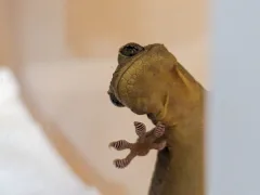 本日のヤモリです。1338日目 本日のヤモリ 2024.02.22 ↑↑↑ 外は雨がたくさん降っております。 そんな中、ニホンヤモリのやもたろう氏らしいへばりつきを魅せてくれております◎ 一心不乱にへばりつき、君は何を思うのか!? (Reno7Aにて)