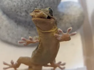 本日のヤモリです。645日目 本日のヤモリ 2022.03.29 けもりさんの、隠れみのを撮影しておりました☆ いつもの照れ屋が発動して、奥へ奥へと移動しております。 どこかしら、笑顔に見えるんだよなぁ♪ 後退りをしましたよ… (Pixel4a5gにて)