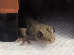 本日のヤモリです。1539日目 本日のヤモリ 2024.09.10 ↑↑↑ けもりさん、ウェットシェルターの中からこちらをにらんでおります… 何かしらの怒りを覚えているのか、かなり険しい表情ですねぇ◎ 明日またご飯の時間だから、それまでもう少し待っててよ☆ (Pixel4a5gにて)
