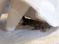 本日のヤモリです。1759日目 本日のヤモリ 2025.04.19 ↑↑↑ いやいや、なんですか〜このポーズは♪ めちゃくちゃ可愛くて、この姿はたまりません◎ お食事タイムを待ち焦がれて、悶絶ポーズなのかも知れません。。。お待たせしてすみませんでしたね、やもたろう☆ (Pixel4a5gにて)