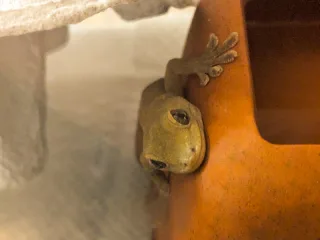 本日のヤモリです。1861日目 本日のヤモリ 2025.07.30 ↑↑↑ 朝撮れヤモリの、やもたろう氏でーす♪ フライングヤモリならぬ、へばりつき、ファンデルワールスヤモリです◎ このアピール姿を見ますと、なんとも言えない愛おしさを感じます☆ (Pixel4a5gにて)