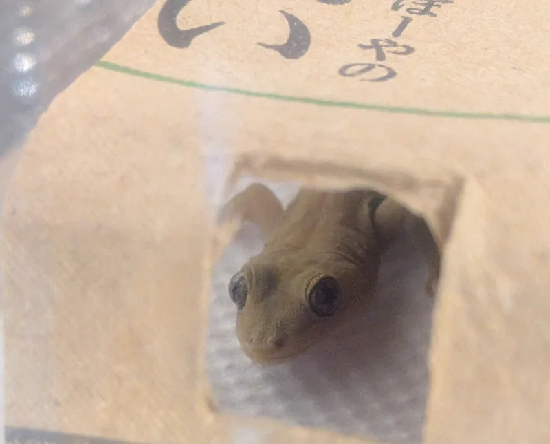 本日のヤモリです。2022日目 本日のヤモリ 2026.01.07 ↑↑↑ お引越し完了後の、けもりさんなんですがねぇ〜♪ ひっそりと身構えていて、なんだか警戒心MAXな気がするんですよね◎ うーん、キレイになったおうちで、ご機嫌を取り戻してくれよぉ☆☆☆ (Pixel4a5gにて)