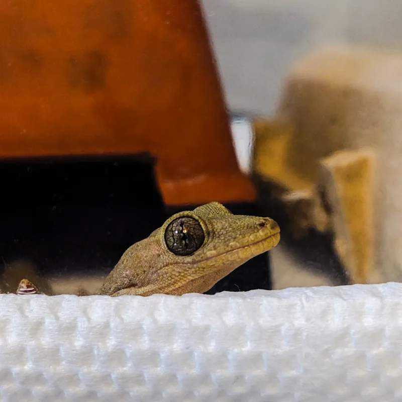 お風呂に入っているわけでもなく、のんびりと、ゆったりとしている、ニホンヤモリのやもたろう氏でした☆☆☆