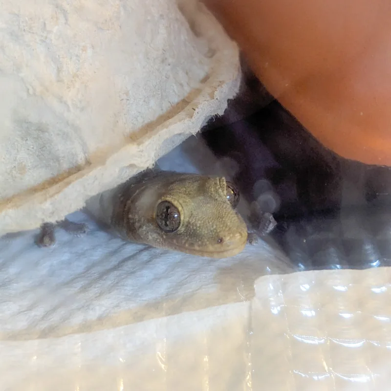 本日のヤモリです。2057日目 本日のヤモリ 2026.02.11 ↑↑↑ けもりさん、ウェットシェルターの隣りにいてのおやすみタ〜イム♪ カメラを向けても、バッチリ寝てまっせ◎ 撮影なんて、どこ吹く風で、俺の眠りは邪魔させないぜ〜☆ (Pixel4a5gにて)