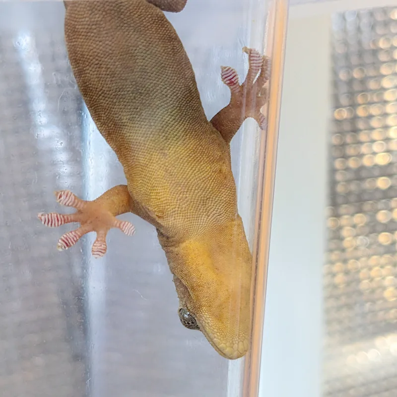 やもたろう氏、クリアケースにへばりついて、ぐっすりと休んでおりました♪