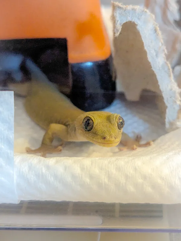 本日のヤモリです。2097日目 本日のヤモリ 2026.03.23 ↑↑↑ けもりさんの虹彩が、バッチバチですね~♪ ぐっすりと休んでおられる証拠なのかなぁと、思っております◎ 3日ぶりに会ったけもりさんは、変わらず安定感バツグンでしたね☆☆☆ (Pixel4a5gにて)