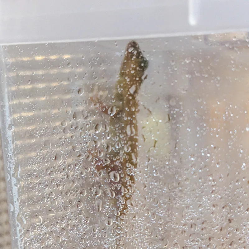 ご飯を食べまして、霧吹きをもらって、いつものように壁を登っていきました、やもたろう氏です♪