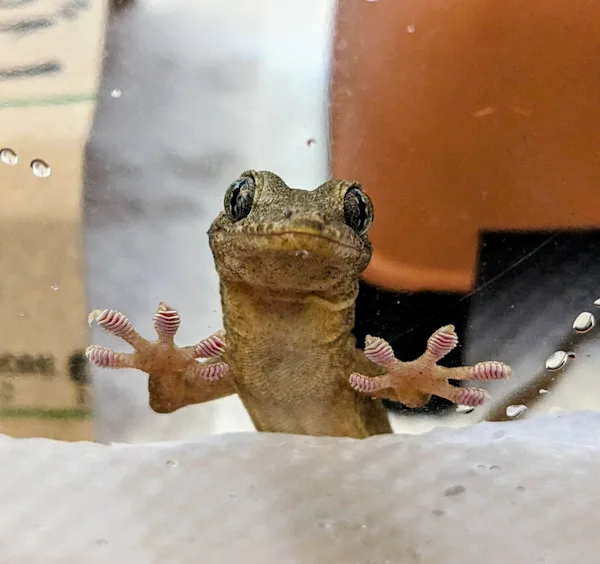本日のヤモリ 本日のヤモリです。1988日目 静岡ツアーに出ておりますのお話、その㉙です。数年ぶりに東名高速道路を走って、浜松西ICで高速道路をおりました。そこから資料館もとい、広報館へはクルマで二十分程度でした。基地沿いの一本道を走りますから、渋滞するとさらに時間がかかります。閉館時間ギリギリに滑り込むことができました。そんなこんなで、本日のヤモリです。 2025.12.04 本日のヤモリ