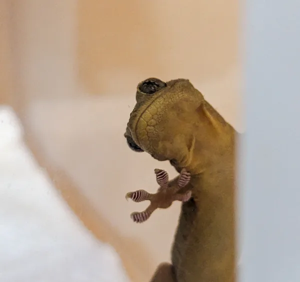本日のヤモリ 本日のヤモリです。1931日目 今日は、けもりさんのお引越しタイムです。彼はなかなかノッてきてくれませんので、移動に手こずるんです。手のひらに乗せて、旧居から、新居へ引っ越すのですがこれが一筋縄では行きません。あの手この手で彼の気をひきますが、噛みつかれたりなんだりと大変なんです…そんなこんなで、本日のヤモリです。 2025.10.08 本日のヤモリ