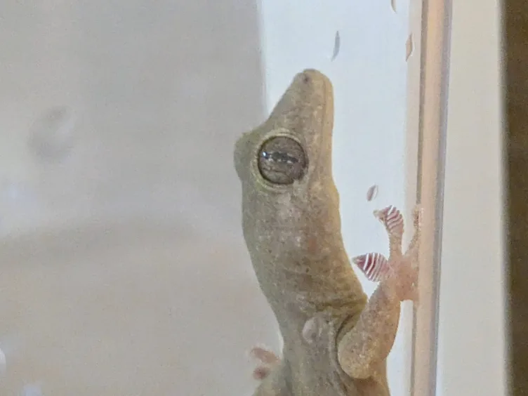 本日のヤモリ 本日のヤモリです。1929日目 10月に入って、2週目というのに30℃近くまで気温が上がりました。朝晩はとても涼しく、秋らしい気候で仕事にしても、プライベートにしても、とてもやりやすく助かっております。わが家のニホンヤモリたちも、そろそろパネルヒーターが登場しそうです。そんなこんなで、本日のヤモリです。 2025.10.06 本日のヤモリ