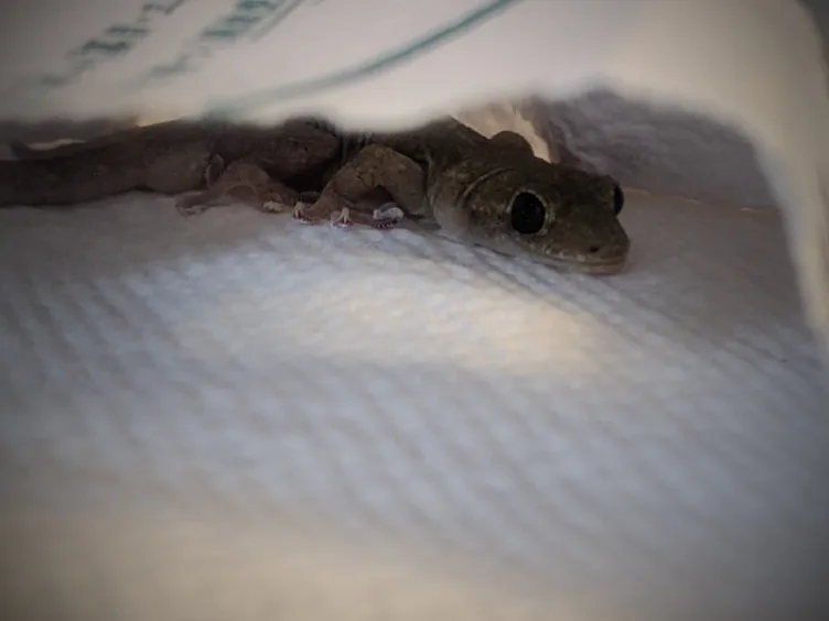 漏水しましたのお話、その③です。高圧洗浄をしてもらったのはいいのですが、現時点ではおそらくその結果で、配水管のどこかを破ってしまって階下に漏水したのであろうとのこと。時系列からすると、洗浄工事のあとわたしがお風呂に入りましたから、おそらくこの系統からの漏水かと思います。そんなこんなで、本日のヤモリです。